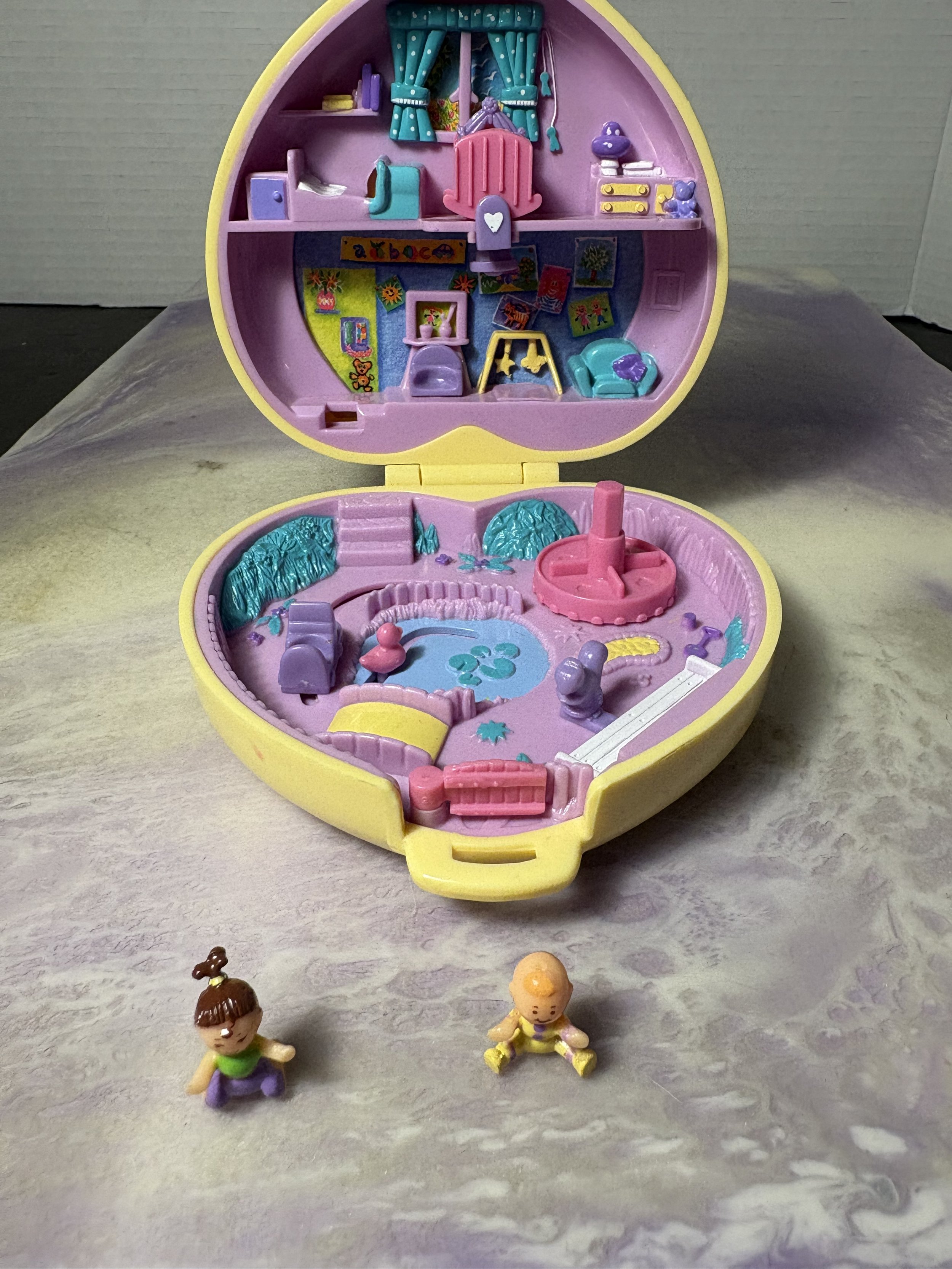 Vintage 1990 Polly Pocket Strollin Baby Babysitting Collection Set with 2 figures , GUC 90's Polly Pocket Compact