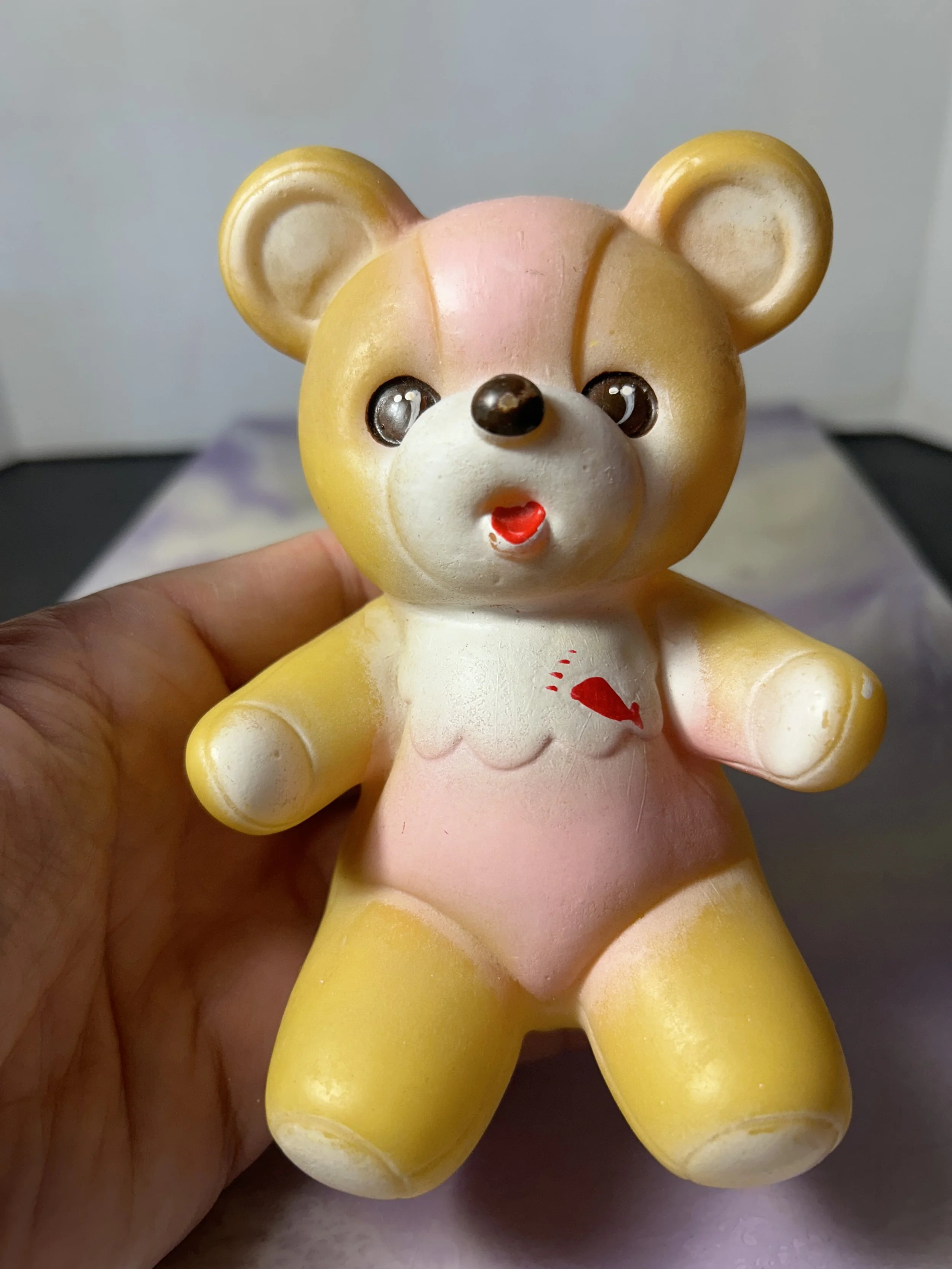 Vintage PVC 1980's Plastic Toy Bear Ross - Squeakie Bear
